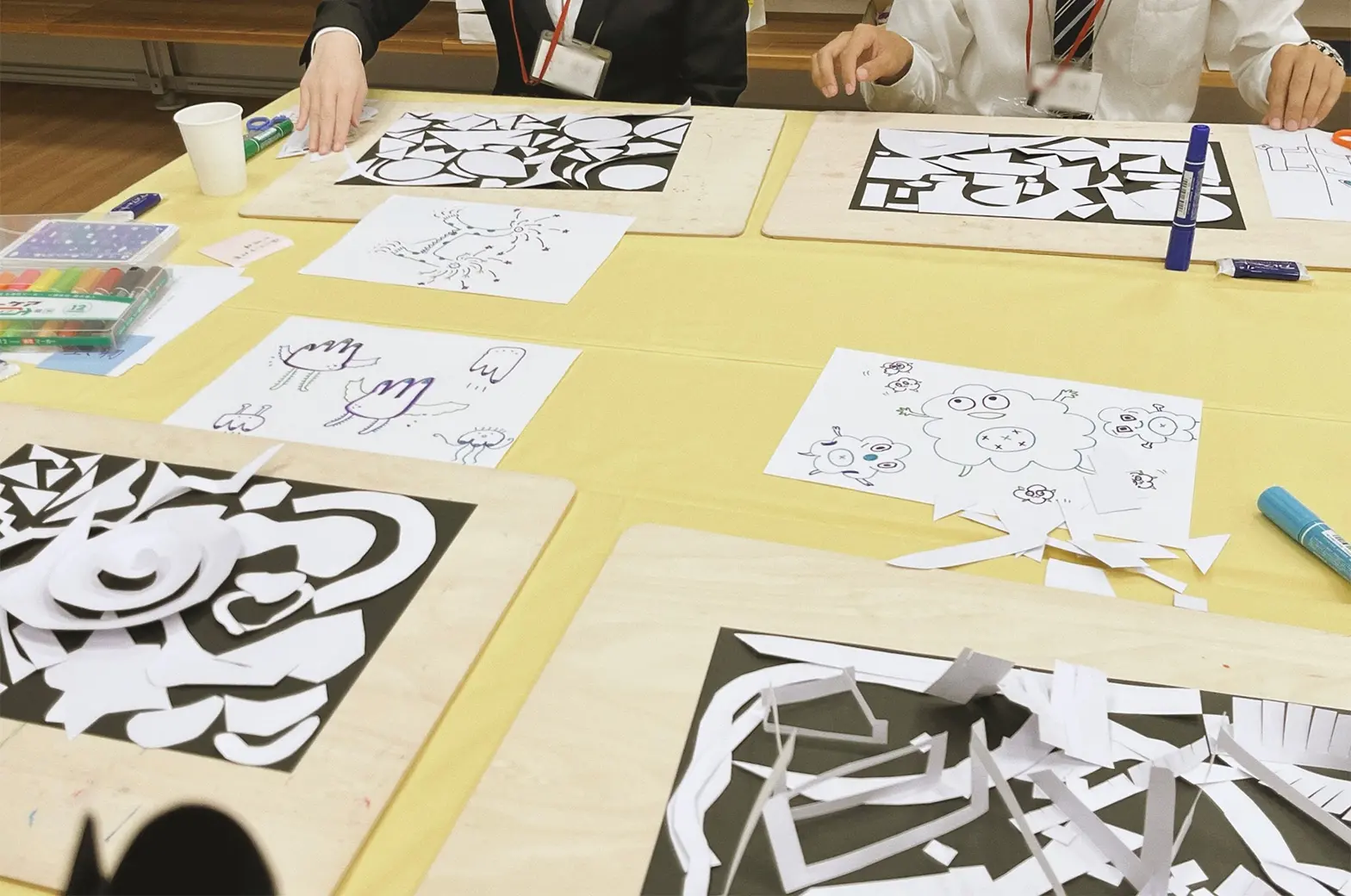 2024年10月の内定式後に、弊社が運営するこども美術館 スカイミュージアムで「チームで仕事をすること」について考えるワークショップを開催しました。アート・カードを使った活動や、参加者同士が協力しながら作品を作り上げる活動を通して、弊社のPurposeやValuesに通じる考え方も感じ取っていただける機会になったと考えています。