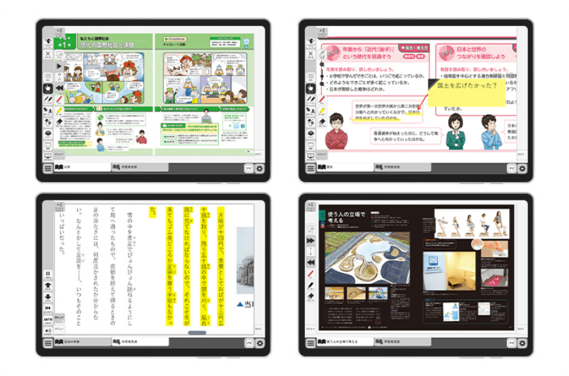 紙の教科書と同一の内容を収録し、紙とデジタルを併用することができます。さらに、特別支援教育への対応やデジタルならではの機能で学習を支援します。
