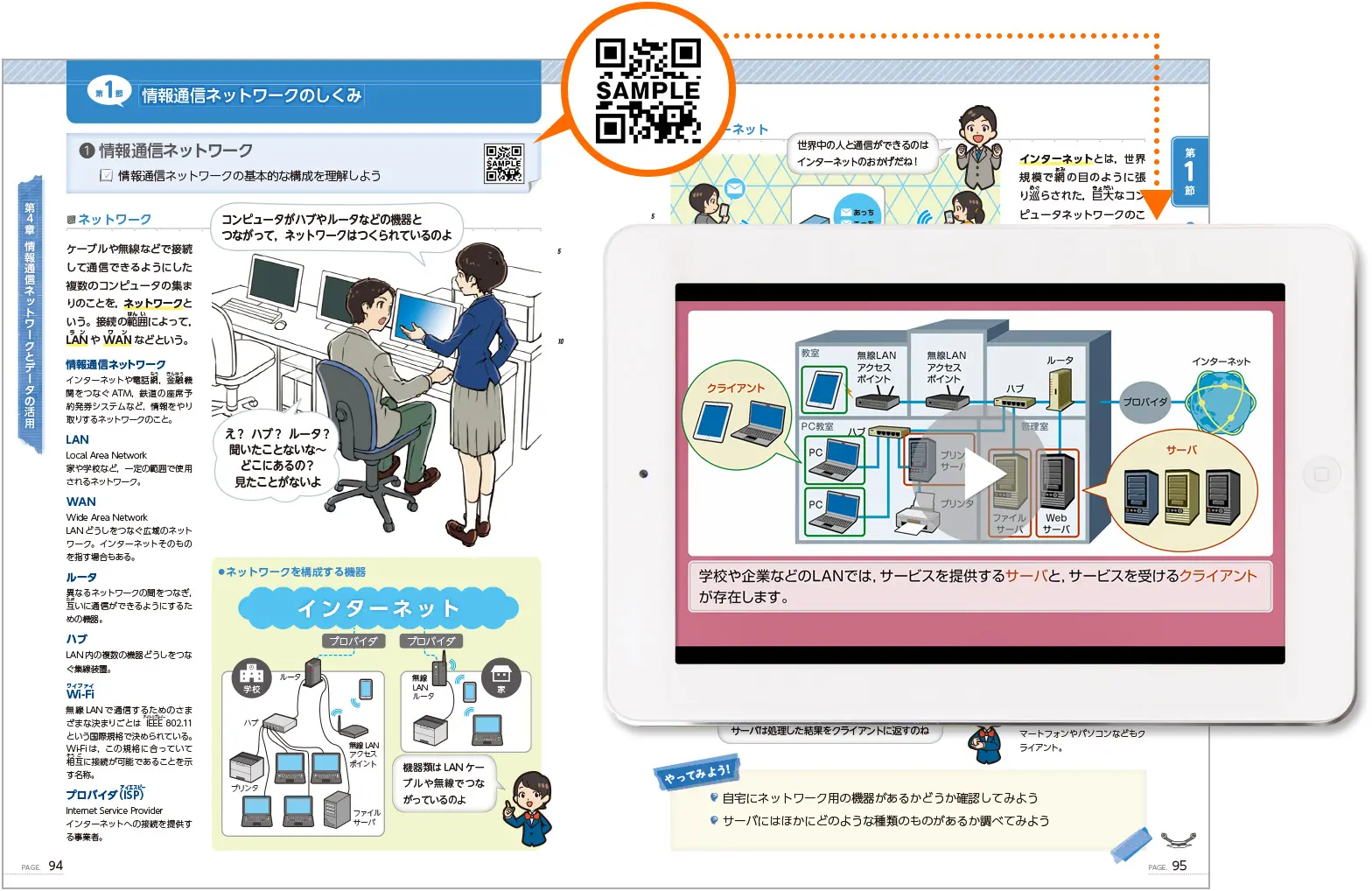 新しい教科書にはQRコードからアクセスできる「教科書QRコンテンツ」が用意されています。スマートフォンやタブレット端末のカメラで読み取ってご活用ください。