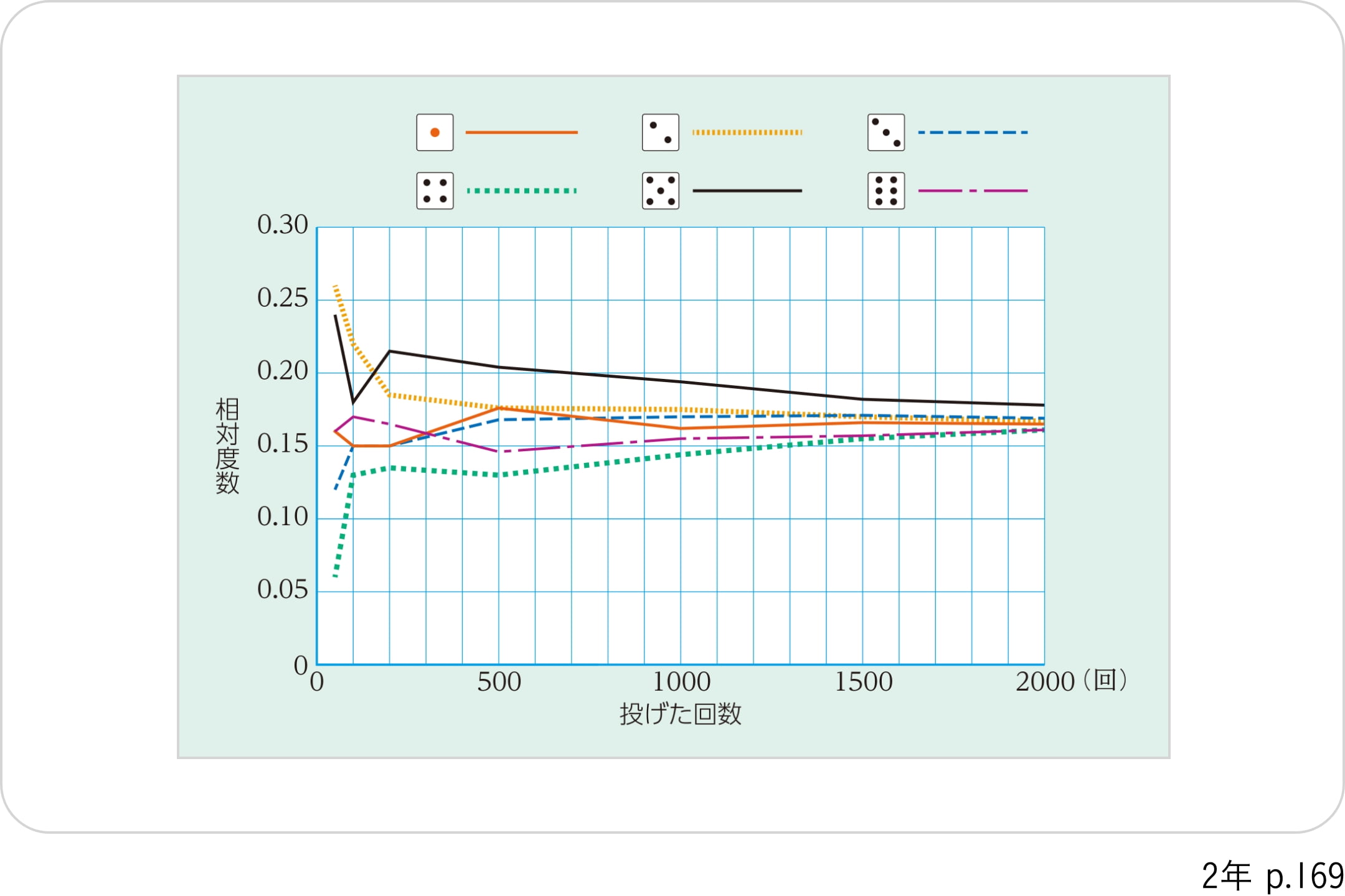 帯グラフや円グラフは細い黒線で区切り、色に頼らない読み取りを可能にしています。教科書の中で使用している色は、色覚に特性のある人でも判別が可能になるよう配慮しています。