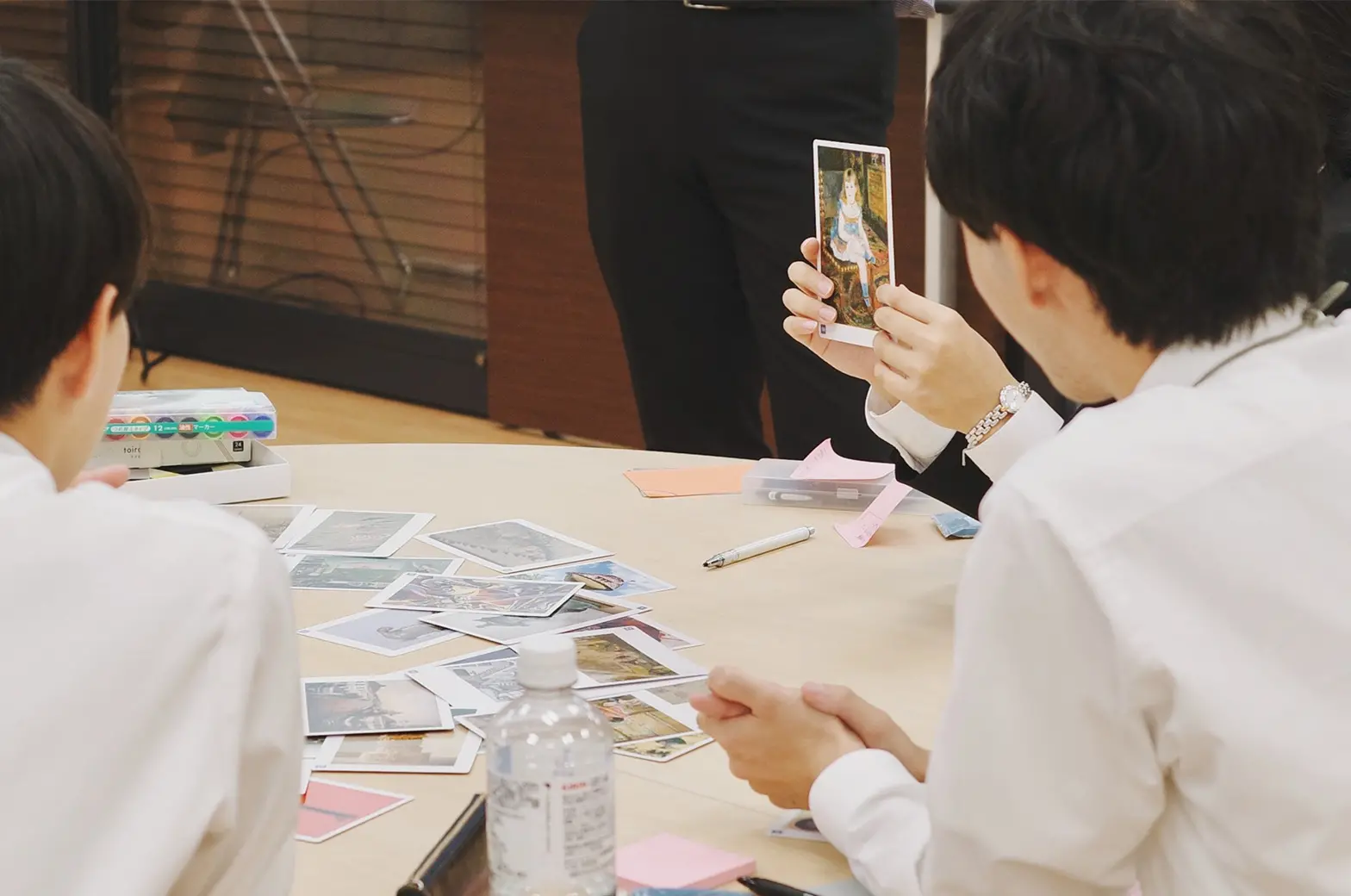 2024年10月の内定式後に、弊社が運営するこども美術館 スカイミュージアムで「チームで仕事をすること」について考えるワークショップを開催しました。アート・カードを使った活動や、参加者同士が協力しながら作品を作り上げる活動を通して、弊社のPurposeやValuesに通じる考え方も感じ取っていただける機会になったと考えています。