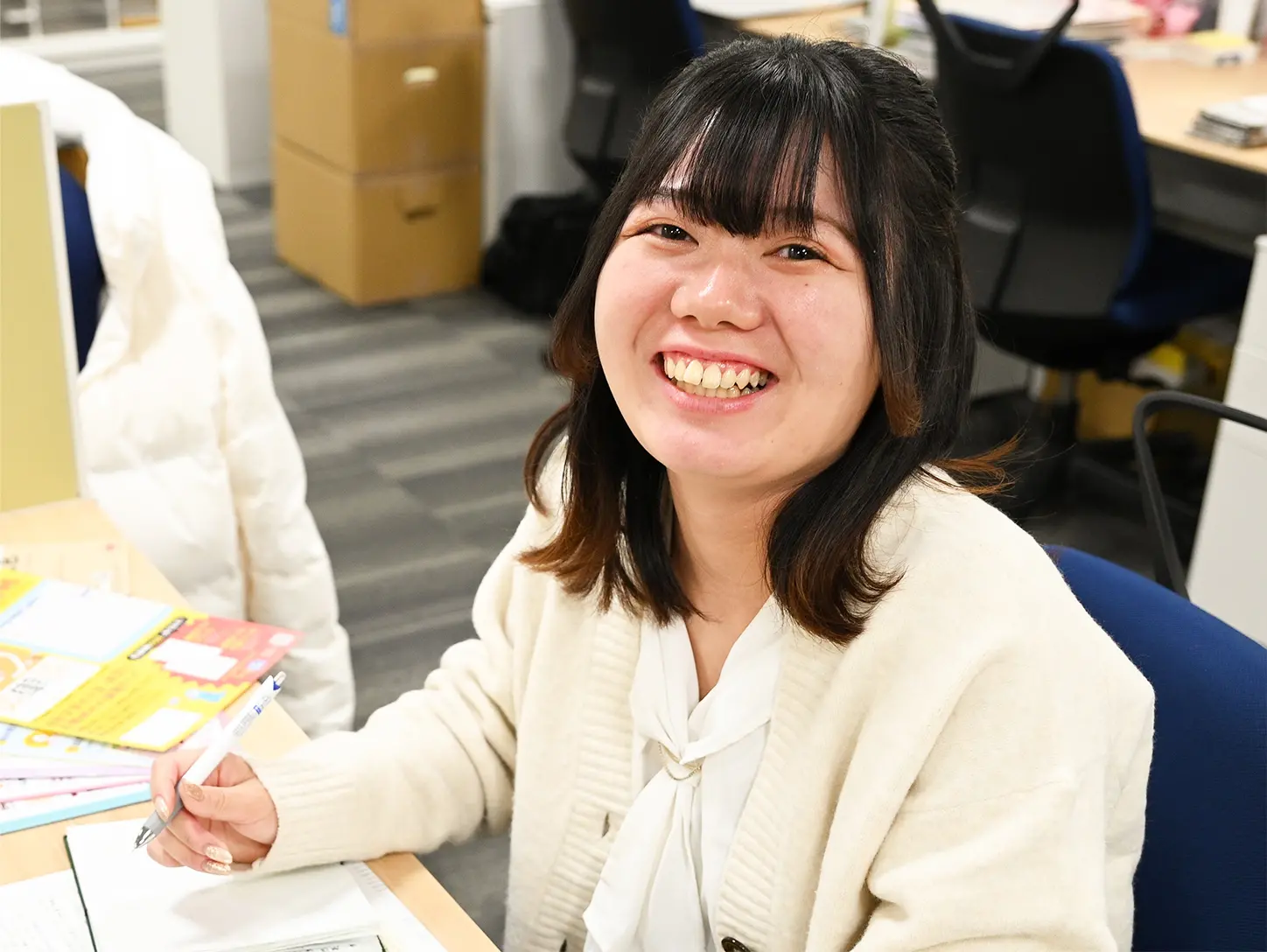 私は文学部だったし、司書の勉強もしていたから、何かしらの形で本に関わりたいなとは思っていて。本に関われる仕事を手当たり次第検索していたら日文にたどり着いた。「教科書の出版社もあるんだ!」って。教科書っててっきり国が作っていると思っていたから(笑)