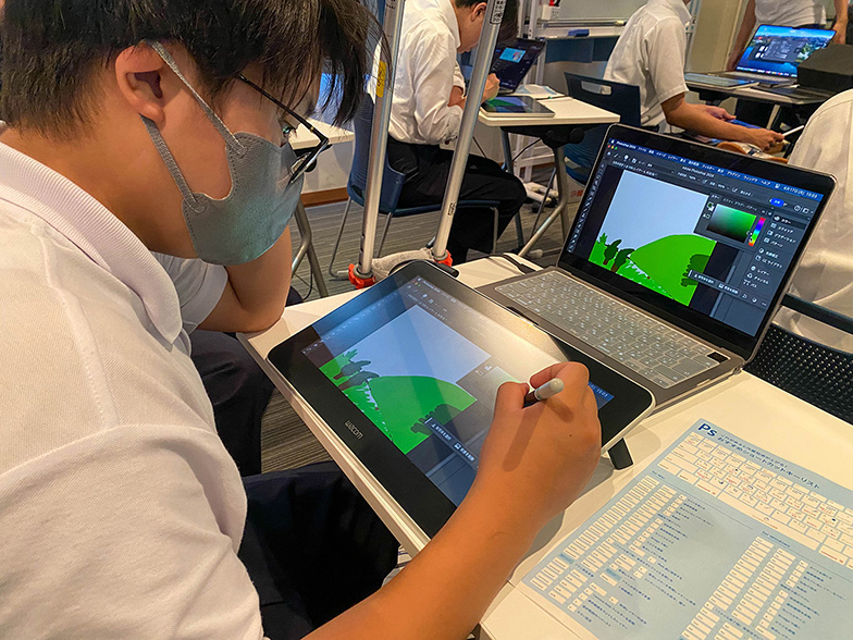 生徒ごとの進度差が大きく、デジタル作画に時間を要する生徒と早く終える生徒が生じた。作業空間を分けるなど環境面の工夫により、各自に合わせたサポートを提供できた。