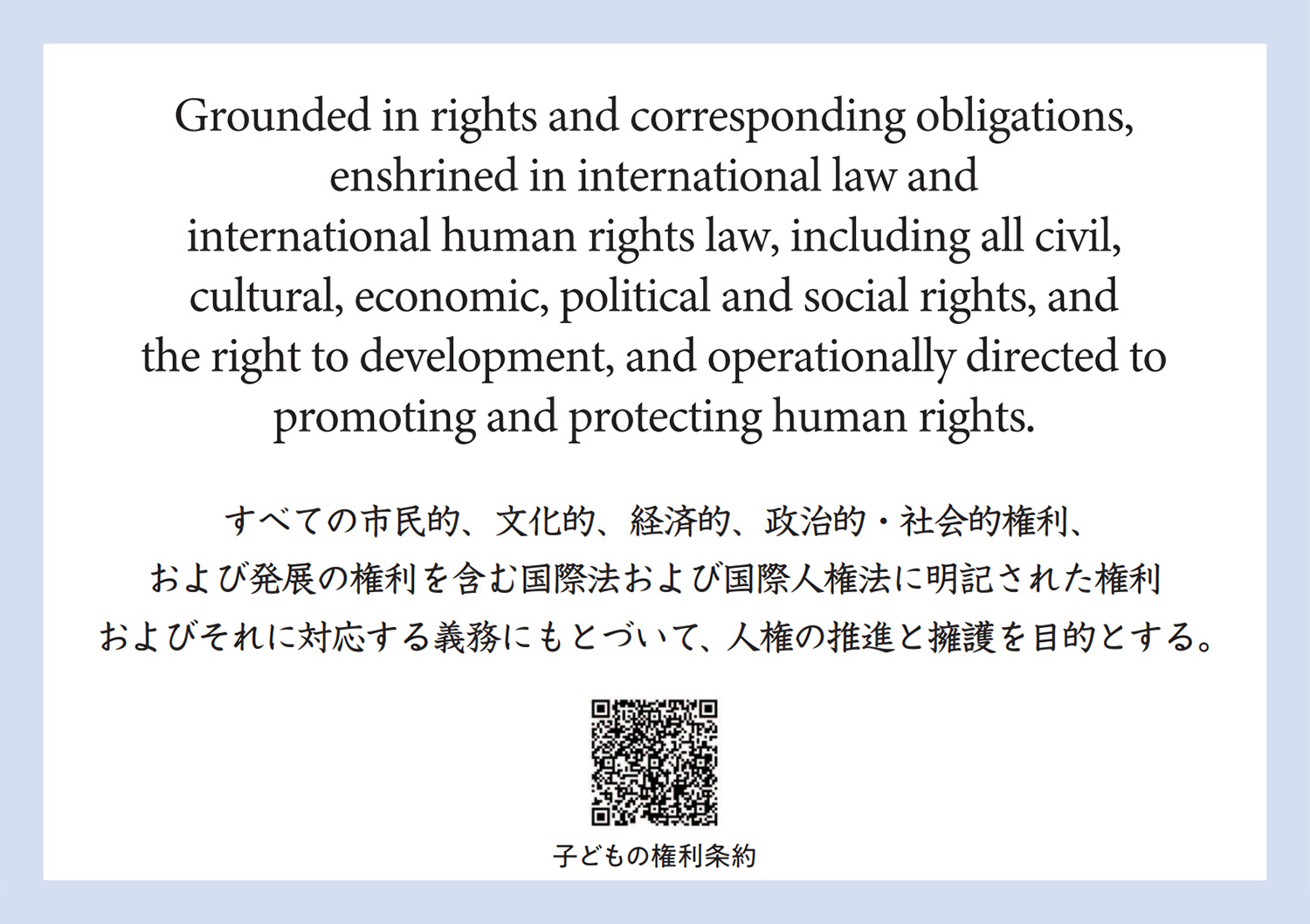 まず、カード表(おもて)面(図1参照)の「超訳」に注目したいと思います。これは裏面(図2参照)に書かれた原文を意識してつくられたものですが、同勧告を親しみやすくするために大胆な訳出がなされています。「人類は長い時間をかけて約束事をつくってきた」の中の「長い時間」については、国王の専制からの自由を主張した「マグナカルタ(大憲章)」(1215年)以来という見方もできれば、法のもとでの秩序を唱えたとされる「ハンムラビ法典」(紀元前18世紀)まで遡るべきという見方もできるでしょう。幾重の苦難を経て人類が獲得したこれらの「約束事」は受け継がれ、17世紀以後の啓蒙思想を経て「フランス人権宣言」(1789年)、さらには国家や文化を超えてすべての人に適用される「世界人権宣言」(1948年)へと結実していきます。
