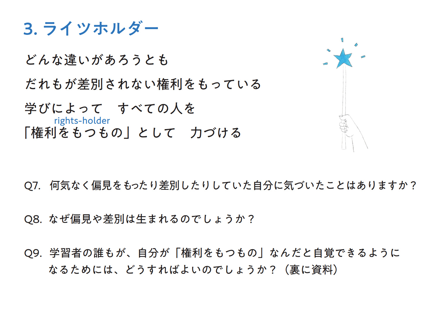 ③学習者の誰もが、自分が「権利をもつもの」なんだと自覚できるようになるためには、どうすればよいのでしょうか?