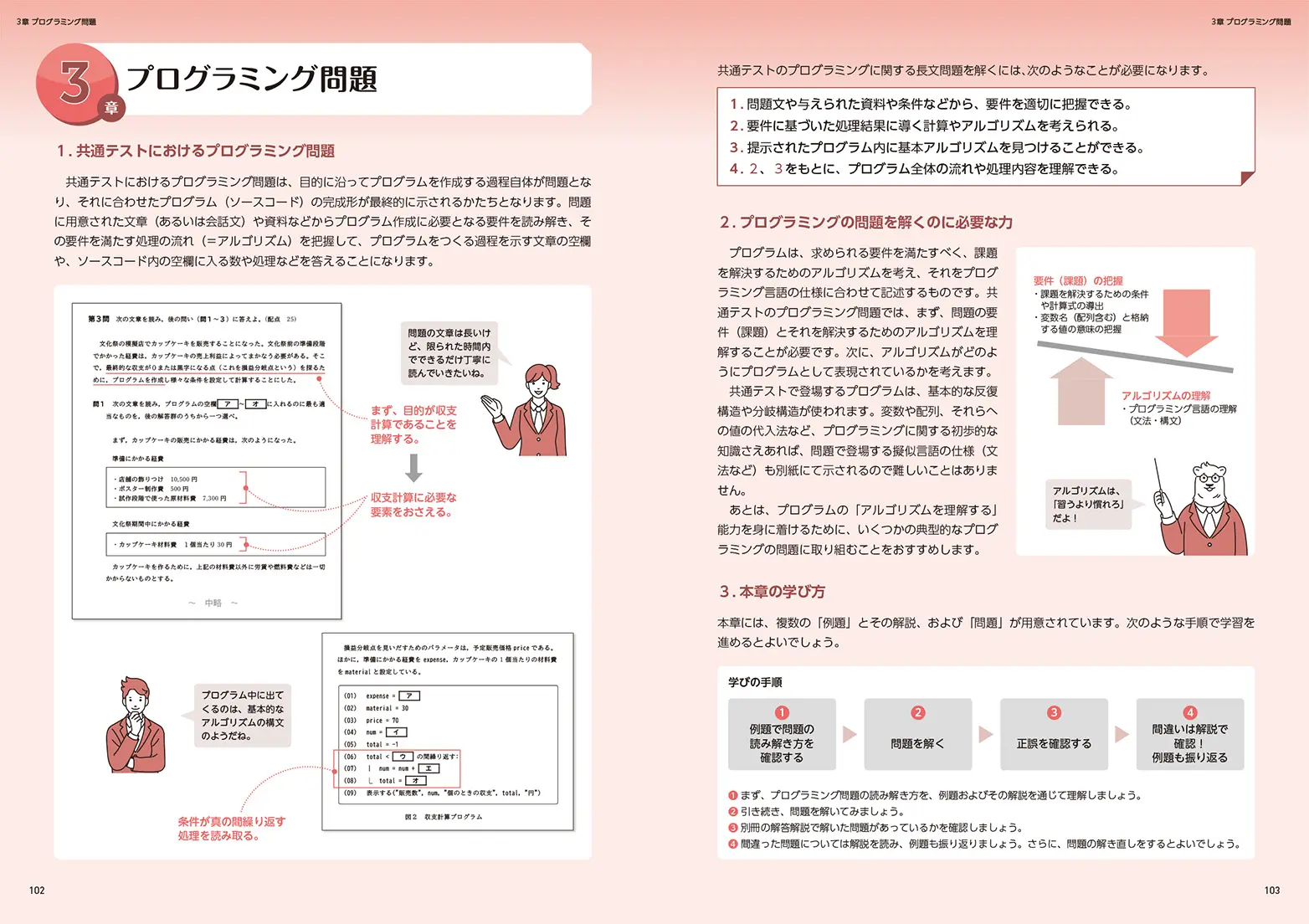本書の導入では、最新の過去問の解説を行います。実際の問題から共通テストの傾向を分析し、さらに、主要な領域においては、それぞれの領域に対する対策も解説し、問題を解くための見方・考え方を養います。